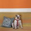 I vivaci accenti arancioni vivacizzano l'open space, fuso armoniosamente tra zona living, zona pranzo e cucina.